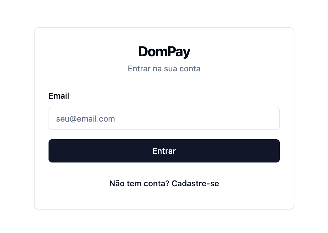 - Na DOMPAY, o acesso é sempre feito com e-mail + código por SMS. Você não precisa de senha.