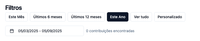- Use os Filtros (Este Mês, Últimos 6 meses, Últimos 12 meses, Este Ano, Ver tudo, Personalizado) para escolher o período que deseja visualizar.
